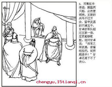 晋武帝司马炎的女婿王敦因建立东晋居功自傲,在晋元帝时以杀刁协清除皇帝身边的恶人为名起兵反叛朝廷。他一边拉拢梁州刺史甘卓联合起兵,湘州刺史司马承派副将邓骞劝甘卓出兵攻打王敦,形容甘出兵打王像摧枯拉朽一样容易。